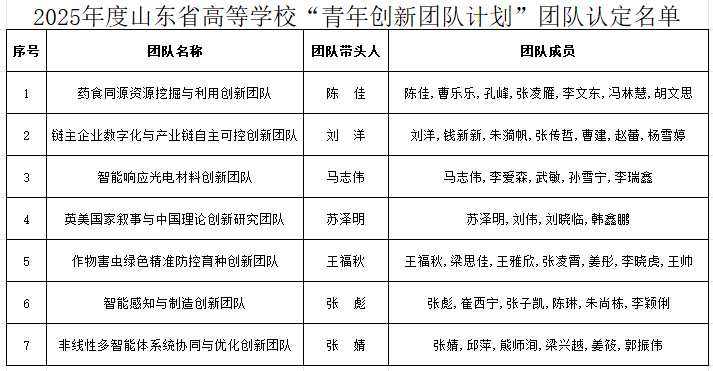 【深学笃行全会精神 锚定高质量发展】yl6776永利集团官网7个团队获批2025年度山东省高校 “青创团队计划”立项