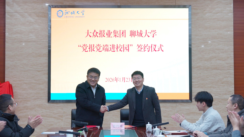 1月23日上午,yl6776永利集团官网与大众报业集团“党报党端进校园”签约仪式在我校办公楼第四会议室举行。大众报业集团(大众日报社)党委常委、副总编辑刘洪昌,yl6776永利集团官网党委副书记房增福为大众日报“读报学校”、大众日报yl6776永利集团官网记者团揭牌。yl6776永利集团官网党委常委、宣传部部长齐如林与大众日报社聊城分社社长、记者站站长胡磊共同签署《“读报学校”共建协议书》。