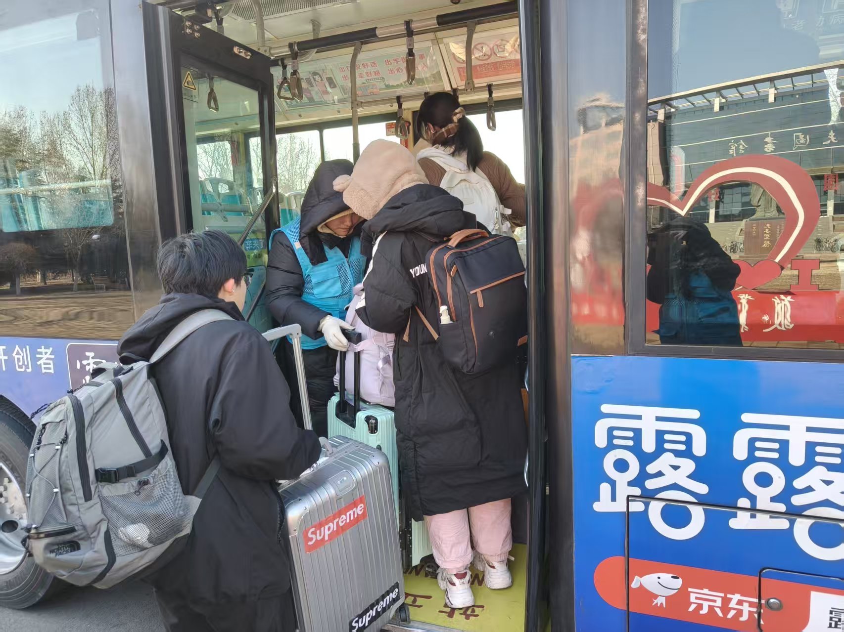 学校与聊城市公交集团建立全流程协同工作机制,将安全与关怀贯穿服务全过程。所有接驳车辆均经过多轮严格安全检测,配备经验丰富、熟悉路线的专业驾驶员,从源头筑牢出行安全防线;乘车点的工作人员及志愿者主动为学生搬运行李、耐心解答乘车疑问、细致核对车辆方向,全力避免错乘漏乘,用热情服务驱散冬日寒意。“本来还担心拖着行李箱挤公交麻烦,没想到学校直接把车开到校园里,还能直达车站落客平台,这份关怀太贴心、太实在了!” 刚顺利乘车的同学满脸笑意地说道。