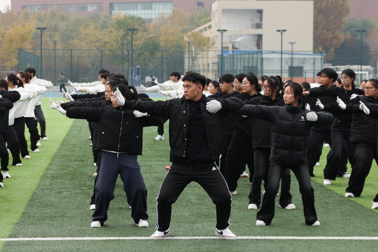 初冬晴日,操场之上,伴着八段锦古雅旋律,六个班级方阵同步起势:从“双手托天理三焦”的气息同频,到“左右开弓似射雕”的刚劲舒展,动作起落有致,尽显其“松柔并济”特质。集体展演结束后,班级专业比拼环节随即展开,各班级方阵以洪亮的口号展现蓬勃锐气。口号落定,方阵即刻沉气凝神,起势稳缓、定势规整,一招一式都彰显平日训练的扎实功底。所有比拼环节结束后,李晨茹倾情献唱,为赛场增添别样活力。随后,吴俊美进行点评,她首先对同学们的展演表示肯定,并鼓励同学们应长期坚持八段锦运动,提高体育运动的积极性,不断促进医学知识与体育运动理念的结合。
