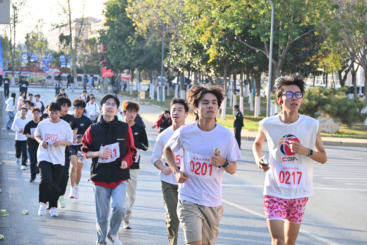 初冬校园景色秀美,奔跑在赛道上的选手斗志昂扬、奋勇争先,用坚持与汗水诠释体育精神。赛道两旁,志愿者们挥舞着旗帜,为选手们提供引导、协助等服务,还有参赛选手师友团的加油声、呐喊声此起彼伏,热烈的氛围感染着每一位参与者和观众。